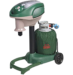 人間の排出する二酸化炭素と汗のにおいに反応して集まってくる蚊の習性を利用した屋外専用蚊取装置です。プロパンガスの燃焼によって発生した二酸化炭素を、特殊スクリーンを通し蚊の嫌う成分を取り除き地表に向け放出。蚊をおびき寄せたところで本体内に吸引し、捕獲ネットに閉じ込め乾燥させる画期的なシステムです。半径35メートル以内の蚊を強力に捕獲します。殺虫剤不要で、他の益虫や人体に影響のない、環境にやさしい商品です。